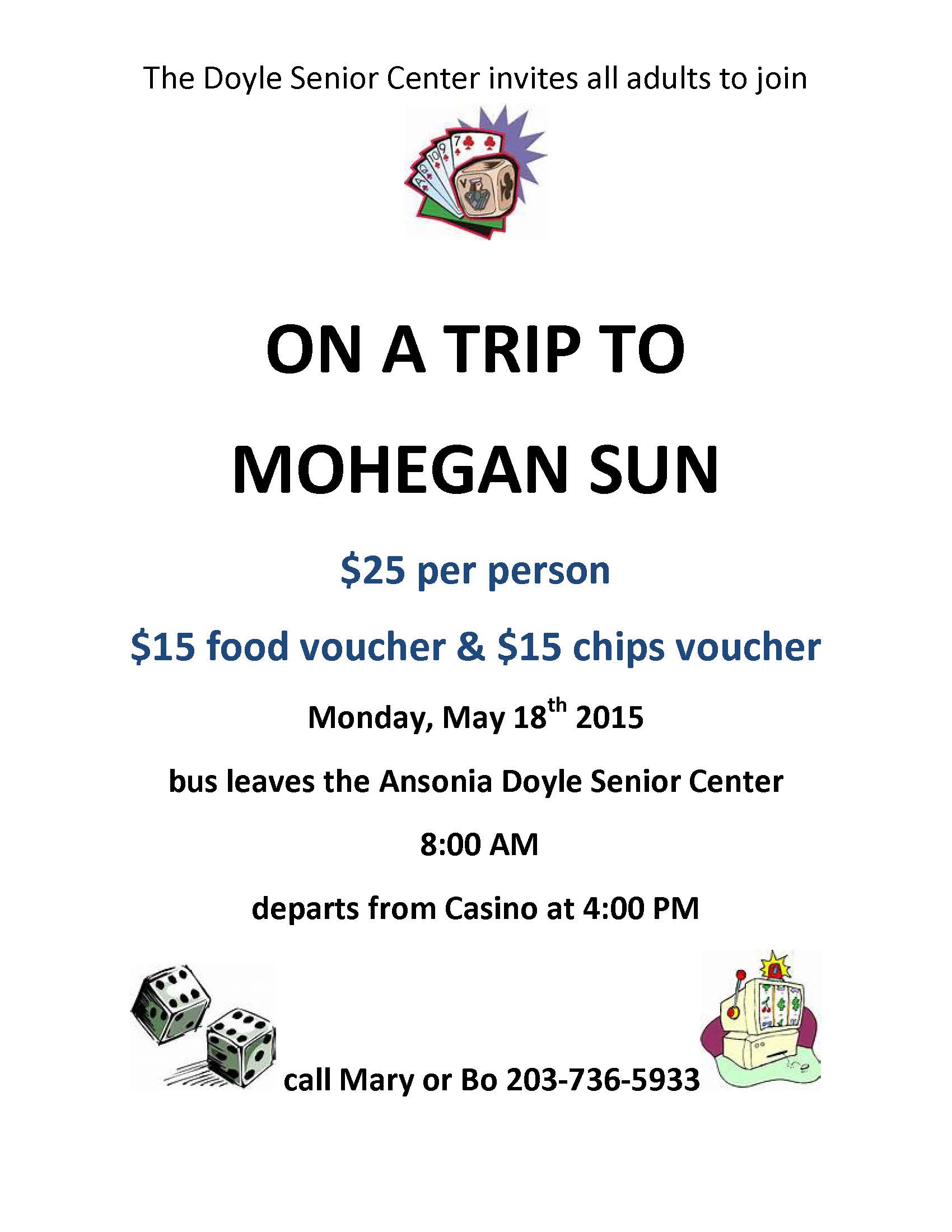 5/18/2015 - May 18th - Bus trip to Mohegan Sun - call to register
